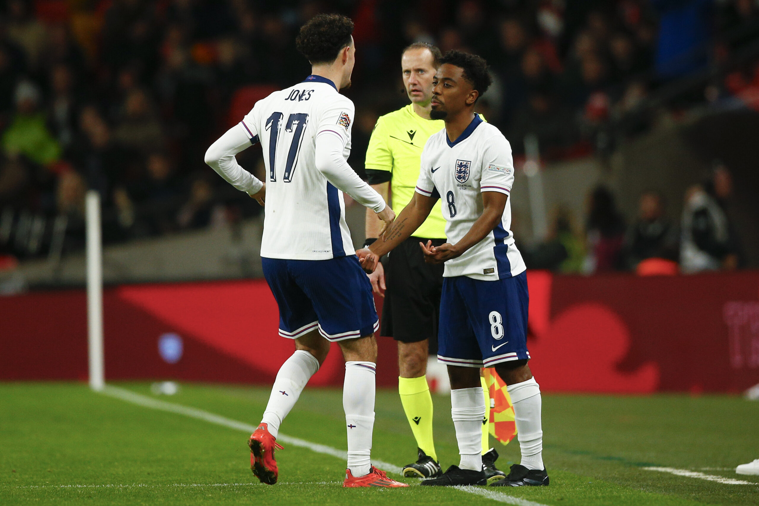 Curtis Jones of England is replaced by Angel Gomes of England during the UEFA Nations League Group B2 match at Wembley Stadium, London