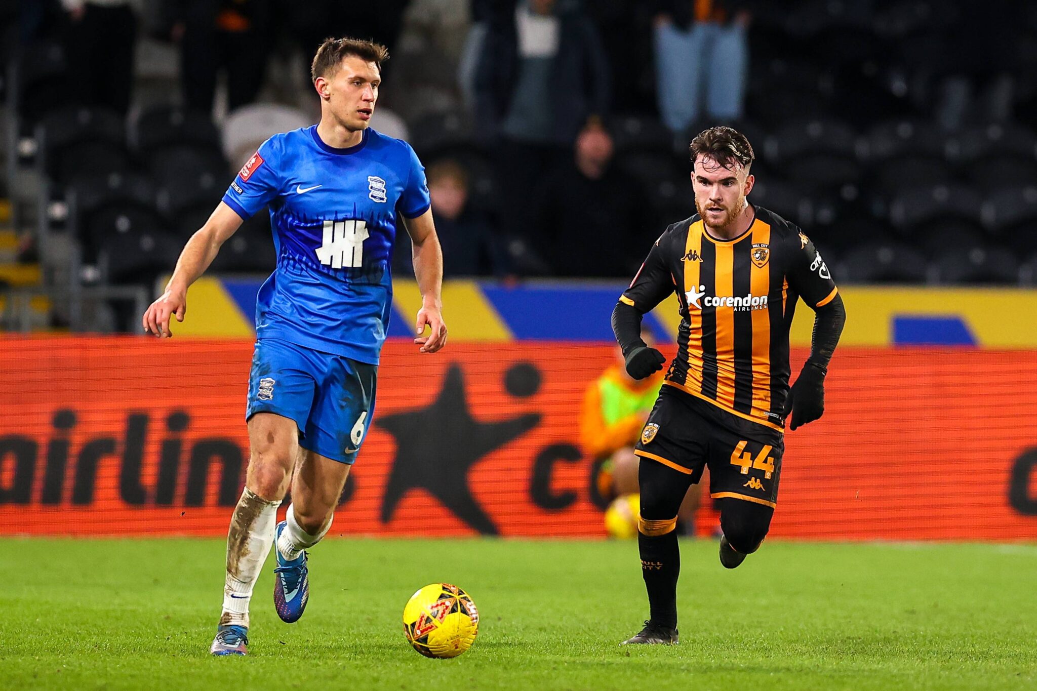 January 6, 2024, Hull, East Riding of Yorkshire, United Kingdom: Aaron Connolly of Hull City chases down Krystian Bielik of Birmingham City during the Emirates FA Cup Third Round match Hull City vs Birmingham City at MKM Stadium, Hull, United Kingdom, 6th January 2024. (Credit Image: © Ryan Crockett/News Images via ZUMA Press Wire)