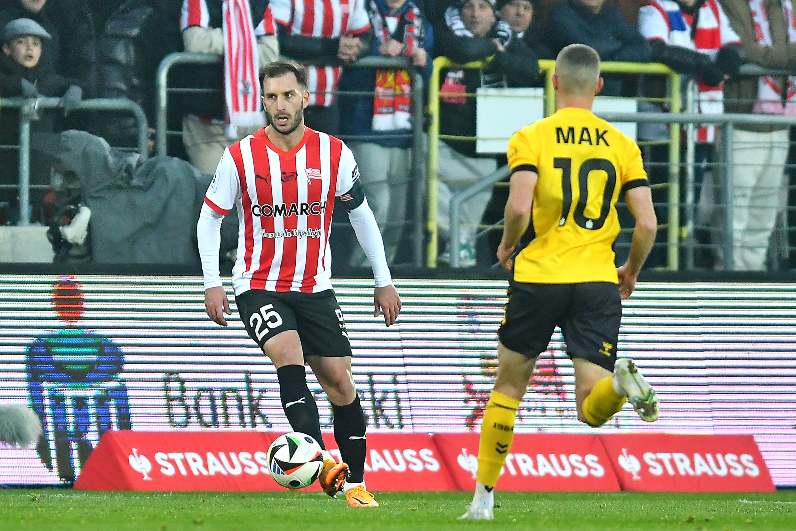 „Pasy” przyzwyczaiły w bieżącym sezonie do bezpośredniego futbolu. Podopieczni Dawida Kroczka nie kalkulują, wykorzystują swoje momenty, bardzo dobrze czują się w fazach przejściowych. Potwierdza to między innymi statystyka średniego posiadania piłki – wyłącznie Puszcza Niepołomice ma rzadziej futbolówkę pod kontrolą. Szkoleniowiec Cracovii jakiś czas temu mówił zresztą, że nie ma to dla niego większego znaczenia, a liczy się przede wszystkim skuteczność. Jej zdecydowanie nie można „Pasom” odmówić. Pierwsza część kampanii 24-25 niewątpliwie należy do Benjamina KallmanaOtara KakabadzeDavida Olafssona, Ajdina HasiciaMikkela Maigaarda, Filipa Rózgi czy Virgila Ghity. Tego ostatniego zabrakło w rywalizacji z GKS-em Katowice z powodu urazu. Twardy orzech do zgryzienia, jak zestawić blok obronny miał trener Dawid Kroczek, ponieważ z kontuzjami zmagają się także Jakub Jugas oraz Kamil Glik.
