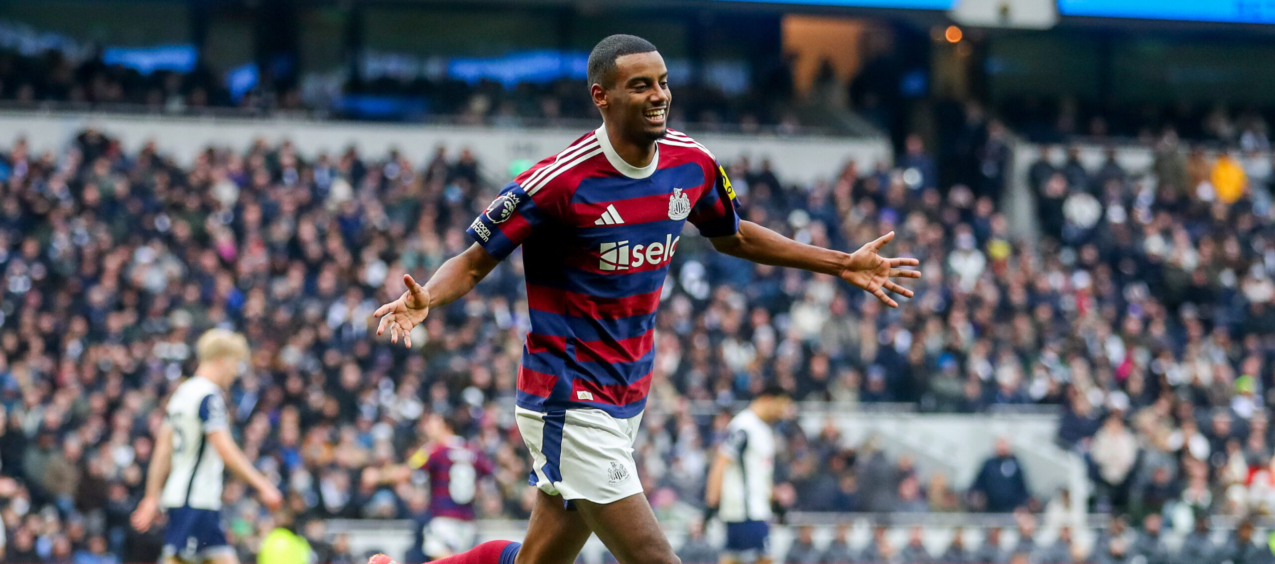 Alexander Isak of Newcastle United celebrates his goal to make it 1-2 during the Premier League match Tottenham Hotspur vs Newcastle United at Tottenham Hotspur Stadium, London, United Kingdom, 4th January 2025