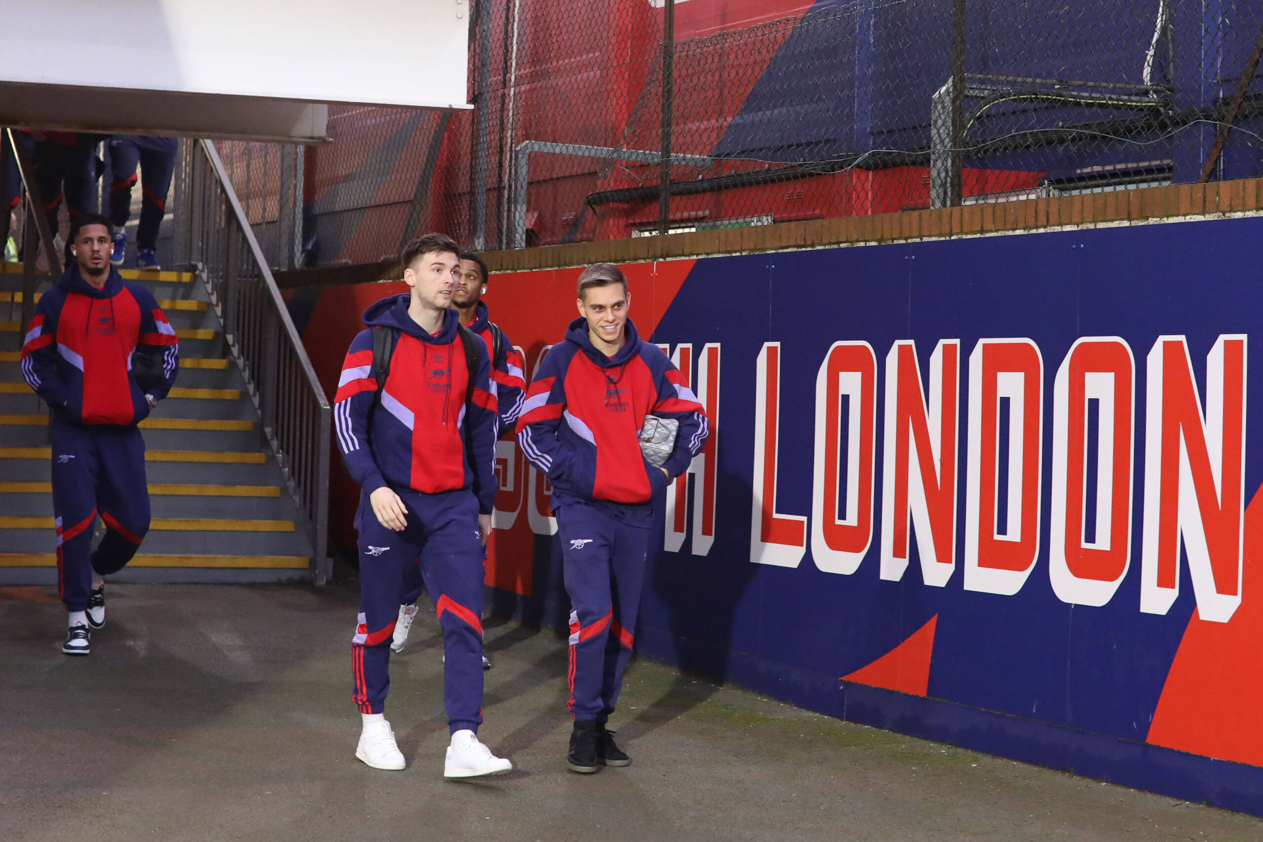 Crystal Palace v Arsenal, London, UK - 21 Dec 2024 Kieran Tierney and Leandro Trossard of Arsenal arrive at Selhurst Park before the Premier League match between Crystal Palace and Arsenal at Selhurst Park, London on 21 December 2024  London Selhurst Park London England Copyright: xJoshxSmith/PPAUKx PPA-155386