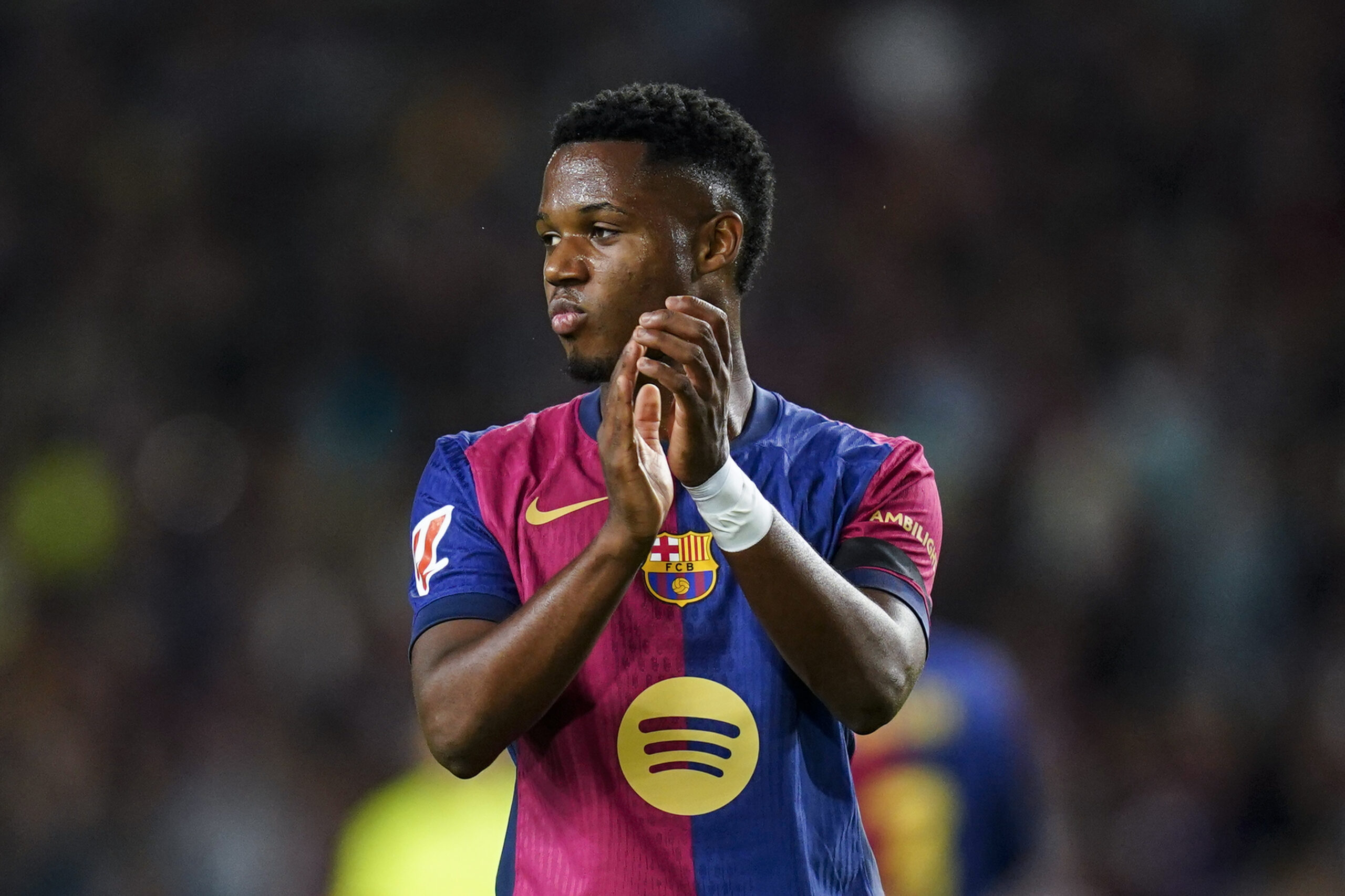 Ansu Fati of FC Barcelona during the La Liga EA Sports match between FC Barcelona and Sevilla FC played at Lluis Companys Stadium on October 20, 2024 in Barcelona, Spain. (Photo by Sergio Ruiz / Imago)  (Photo by pressinphoto/Sipa USA)