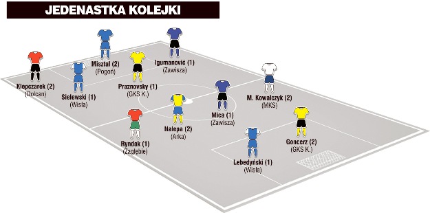 Z bardzo dobrej strony podczas tej rundy spotkań zaprezentowały się drużyny prowadzone przez nowym szkoleniowców. GKS Katowice Jerzego Brzęczka i Zawisza Bydgoszcz Macieja Bartoszka wygrały swoje mecze i wprowadziły do naszej „jedenastki” po dwóch zawodników – odpowiednio: Goncerza i Praznovskiego, a także Igumanovicia i Micę.