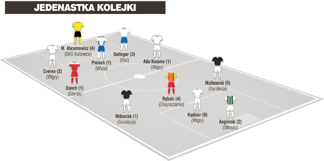 Dwóch wyróżnionych zawodników ma Sandecja Nowy Sączy, która rozbiła Pogoń Siedlce (4:0). Na nominacje zapracowali sobie Maciej Małkowski, który ustrzelił hat-tricka oraz Mateusz Wdowiak.