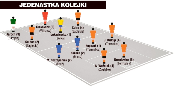 Tym razem „jedenastkę” kolejki zdominowali piłkarze dwóch klubów – Termaliki Bruk Bet-Nieciecza – Drozdowicz, Biskup i Kupczak oraz Zagłębia Lubin – Cotra, Woźniak i Guldan.