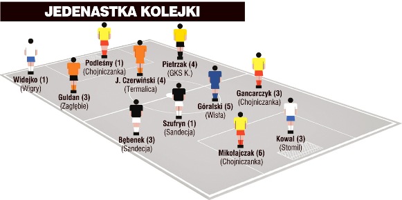 W tym tygodniu królem polowania została Chojniczanka Chojnice, która wprowadziła do „jedenastki” kolejki aż trzech zawodników: Mikołajczaka, Gancarczyka i Podleśnego.