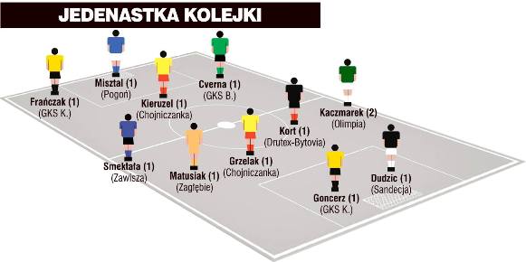 Dwóch zawodników do „jedenastki” kolejki wprowadziła jeszcze Chojniczanka Chojnice, która pokonała Olimpię Grudziądz (2:1). W tym przypadku na wyróżnienie zapracowali sobie Rafał Grzelak i Piotr Kieruzel.