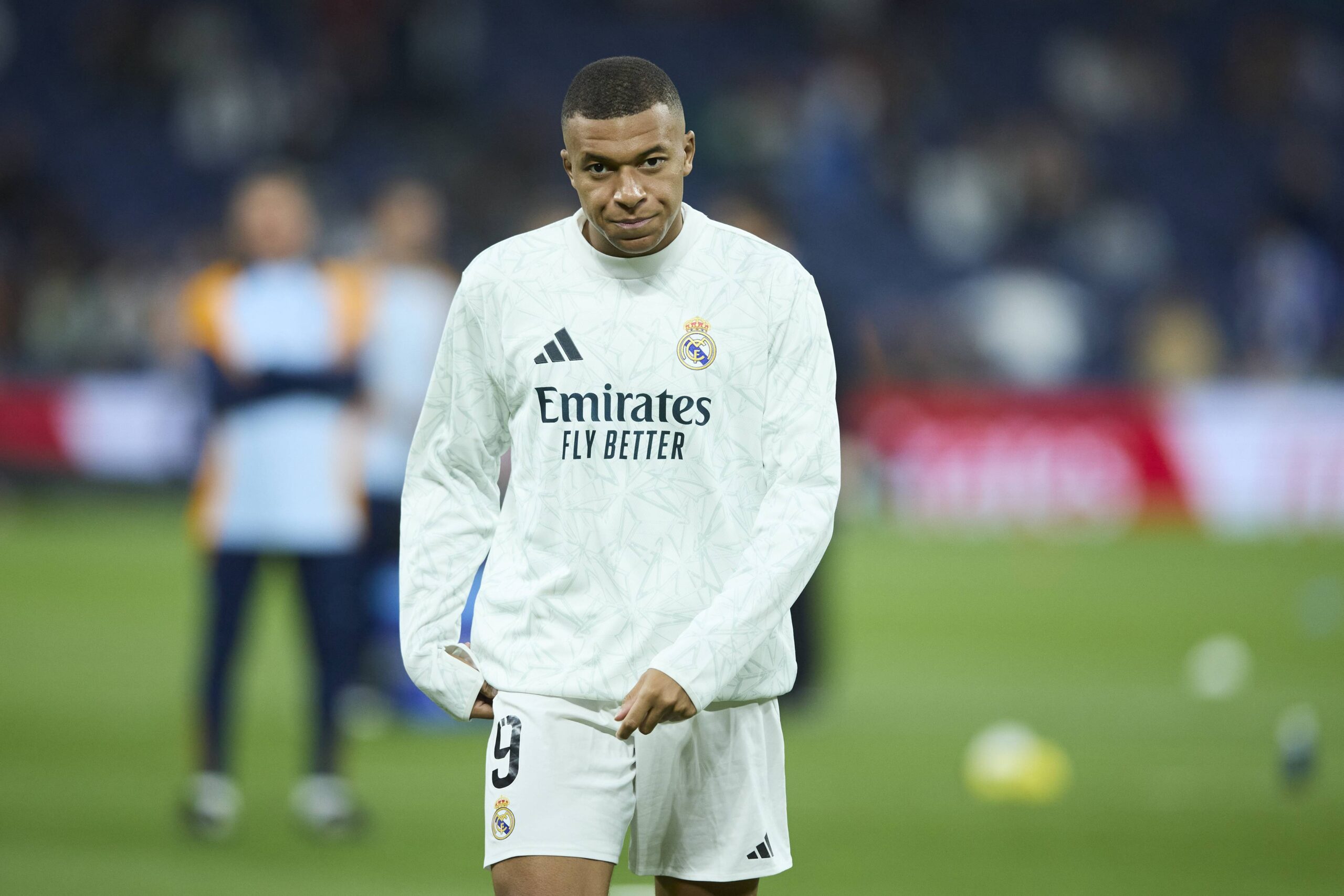 Kyliam Mbappe (Real Madrid CF) looks on during the LaLiga match between Real Madrid and CD Alaves at Santiago Bernabeu on September 24, 2024 in Madrid, Spain.   (Photo by Manu Reino/DeFodi Images)
