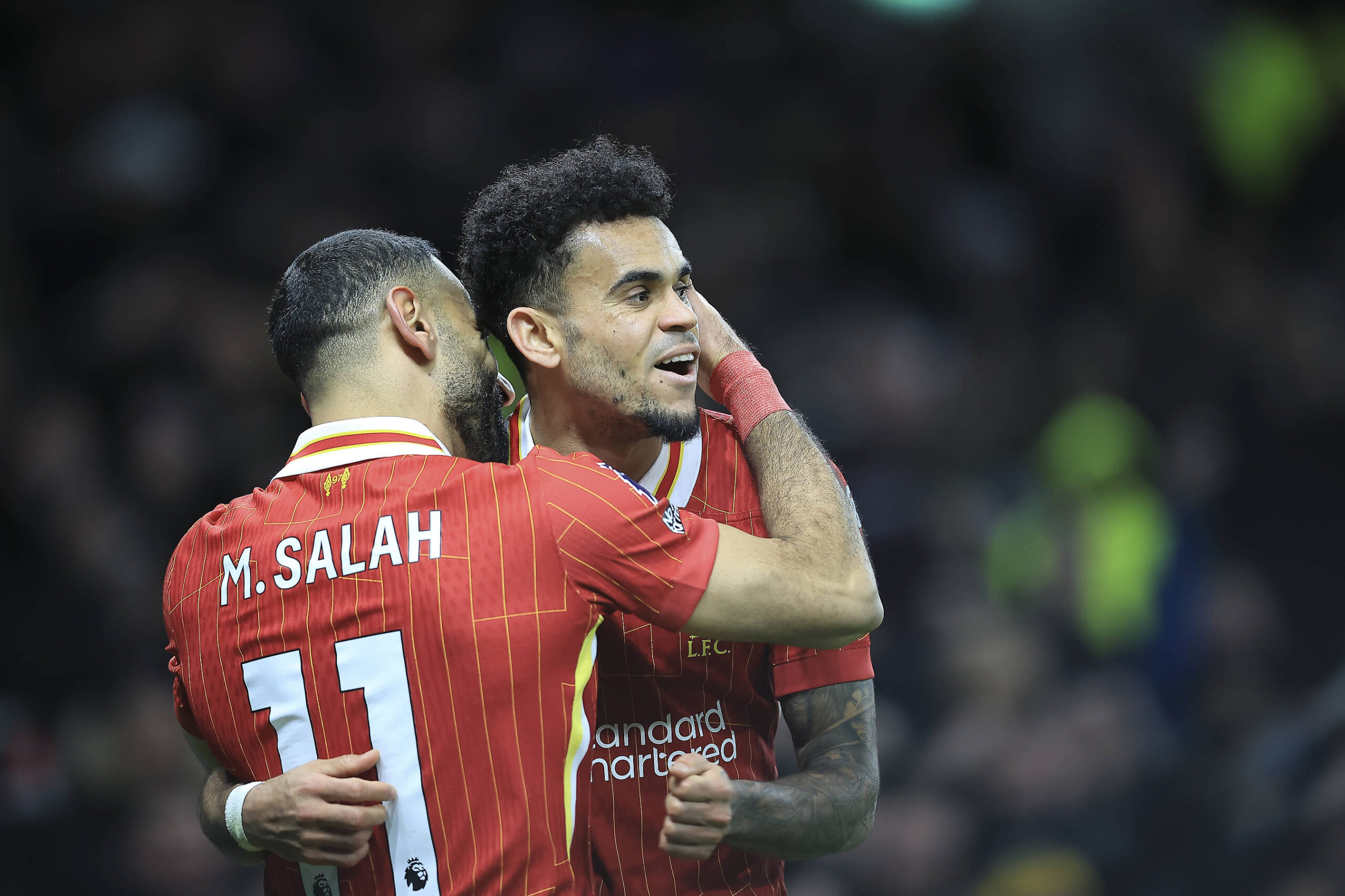 Tottenham Hotspur v Liverpool Premier League 22/12/2024. GOAL CELEBRATION Liverpool Forward Luis Diaz 7 makes it 6-3 during the Premier League match between Tottenham Hotspur and Liverpool at Tottenham Hotspur Stadium, London, United Kingdom on 22 December 2024. Editorial use only DataCo restrictions apply See www.football-dataco.com , Copyright: xChrisxFoxwellx PSI-21118-0180