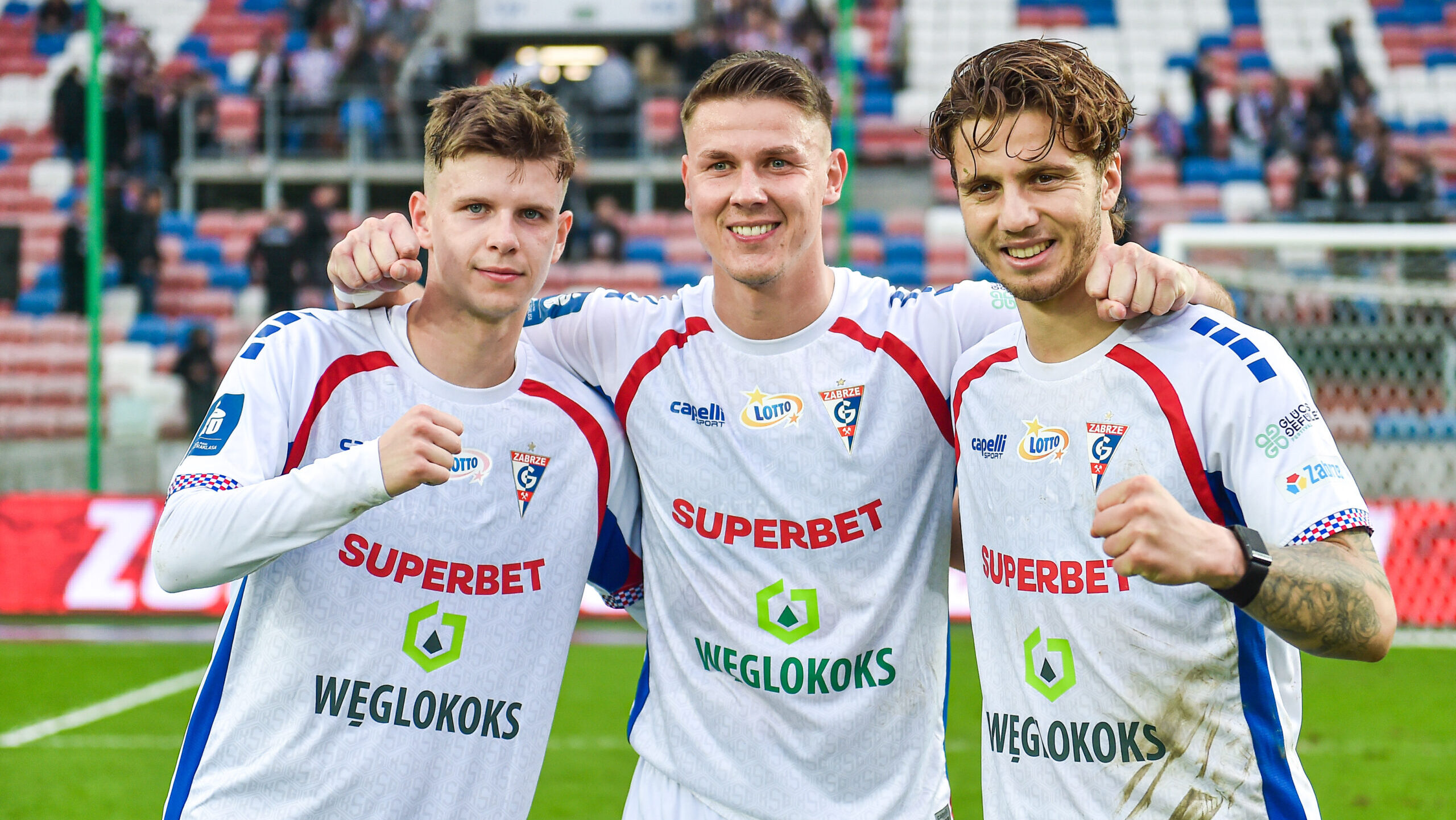 Patrik Hellebrand, Damian Rasak, Luka Zahovic, radosc, wygrana, zwyciestwo