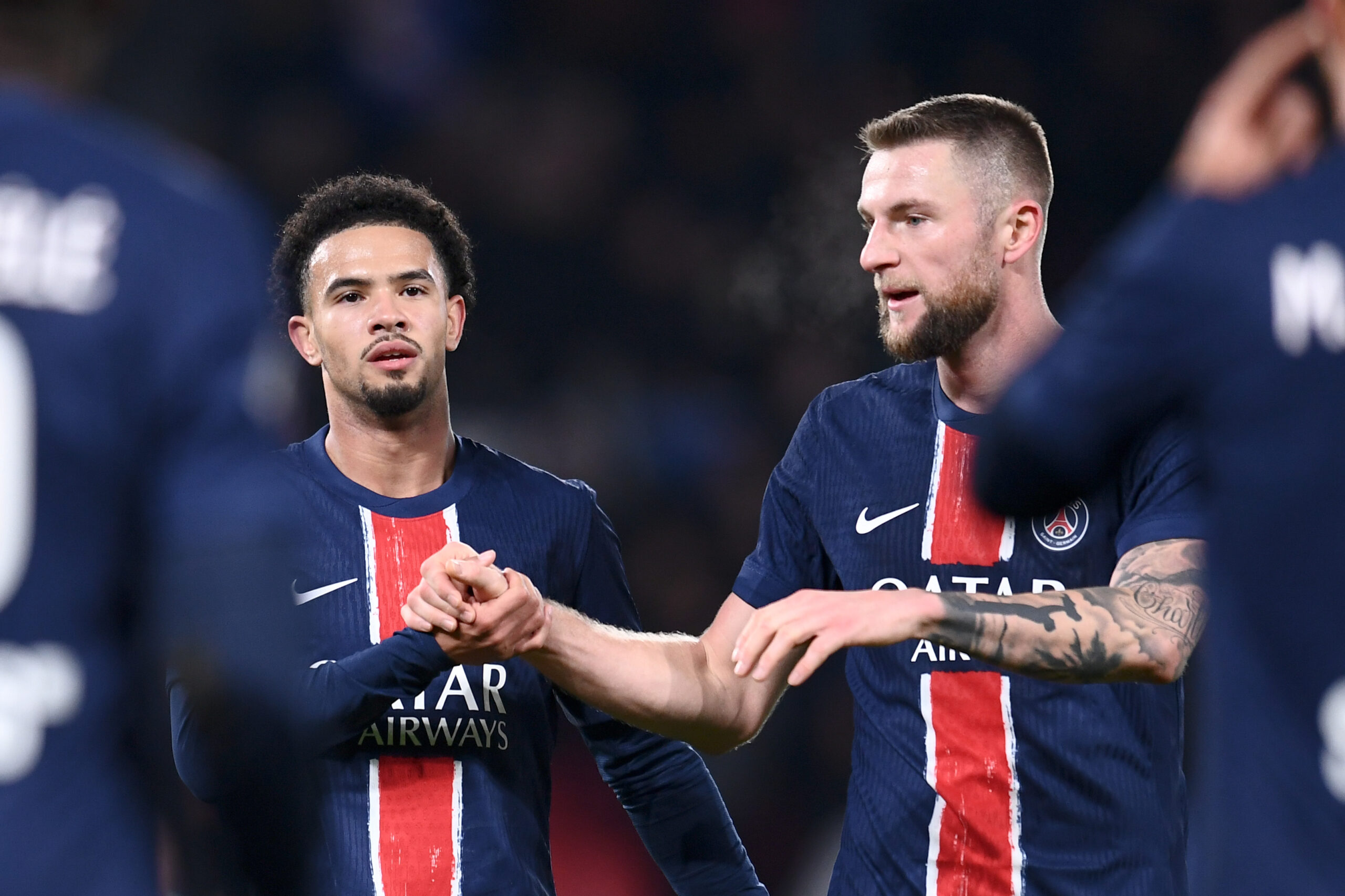33 Warren ZAIRE EMERY (psg) - 37 Milan SKRINIAR (psg) during the Ligue 1 McDonald's match between PSG and Toulouse at Parc des Princes on November 22, 2024 in Paris, France. (Photo by Philippe Lecoeur/FEP/Icon Sport/Sipa USA)