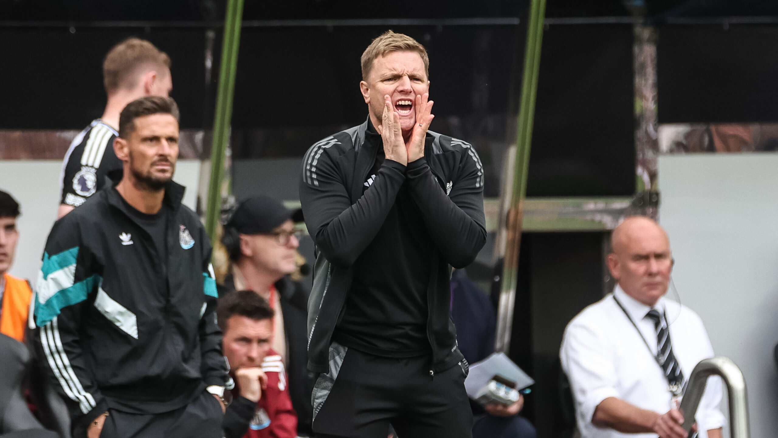 September 28, 2024, Newcastle, Tyne And Wear, United Kingdom: Eddie Howe manager of Newcastle United gives his team instructions during the Premier League match Newcastle United vs Manchester City at St. James's Park, Newcastle, United Kingdom, 28th September 2024. (Credit Image: © Mark Cosgrove/News Images via ZUMA Press Wire)