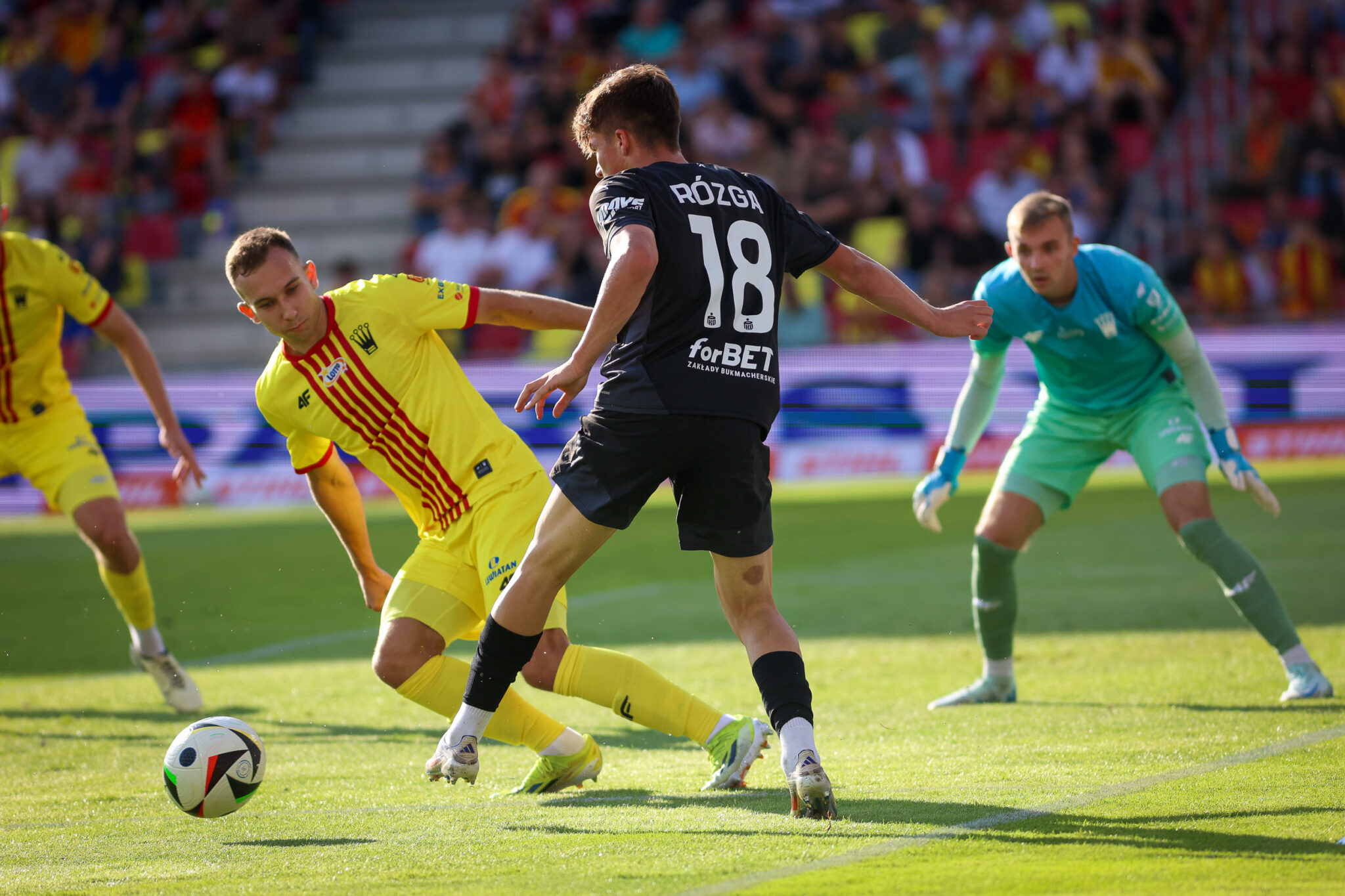 „Pasy” prowadzenie objęły w 37. minucie. Po centrze z rzutu rożnego strzał oddał Benjamin Kallman, po drodze piłka odbiła się od Miłosza Trojaka, a następnie trafiła pod nogi Virgila Ghity, który sprytnym uderzeniem pokonał Xaviera Dziekońskiego.