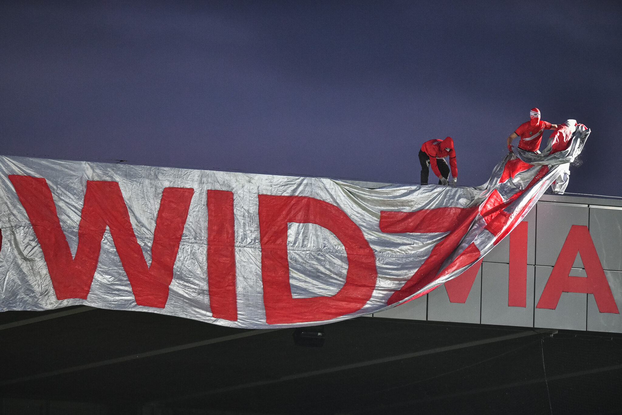 W drugiej połowie meczu Cracovia – Widzew, kibice gości pojawili się na dachu stadionu i – poprzez płótno z napisem „Widzew” – zakryli nazwę klubu „Cracovia” przy słowie „Pany”. Chwilę później fani gospodarzy przejęli transparent, który potem spłonął.