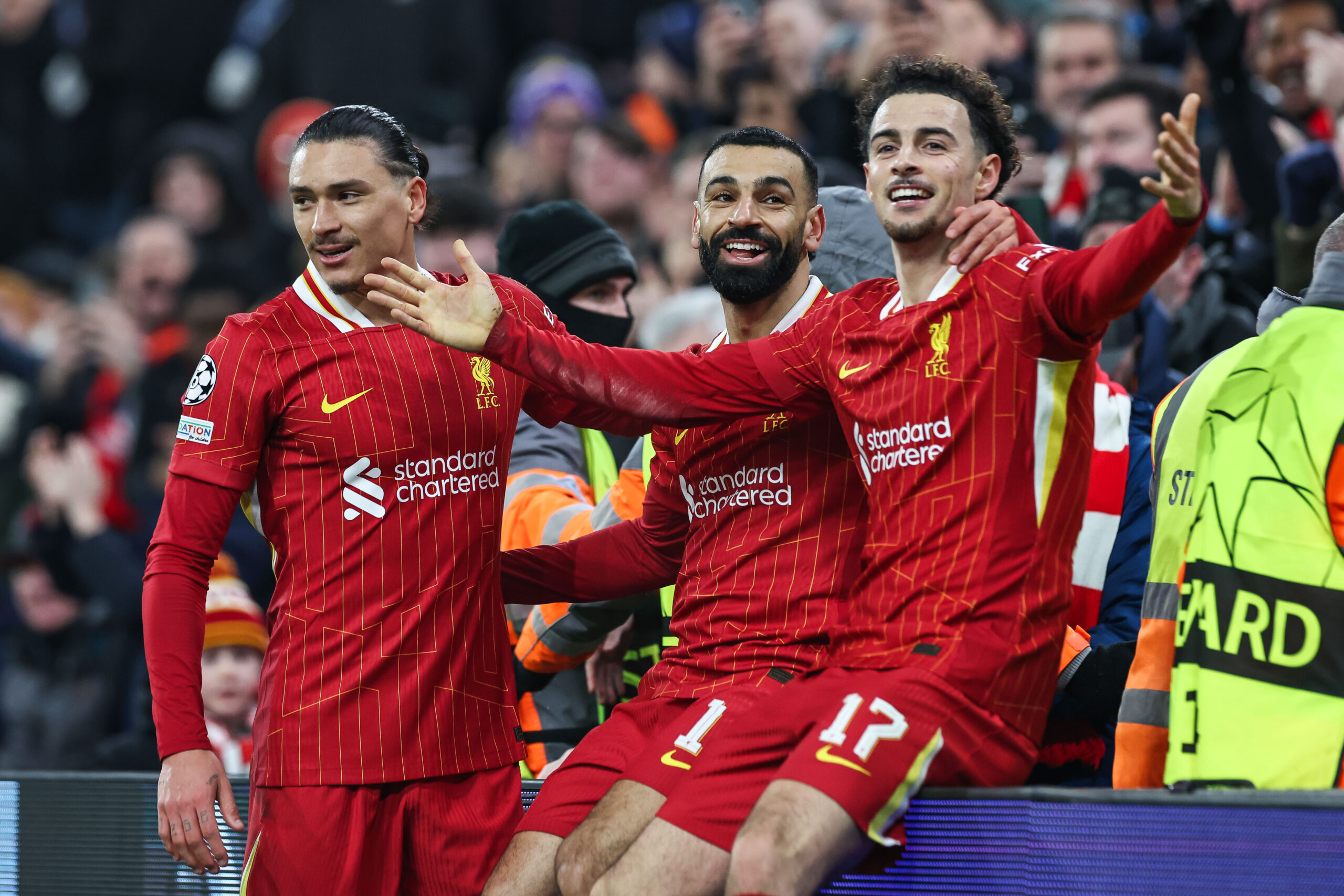 Mohamed Salah of Liverpool celebrates his goal to make it  1-0 during the UEFA Champions League - League Stage Liverpool v Lille at Anfield, Liverpool, United Kingdom, 21st January 2025