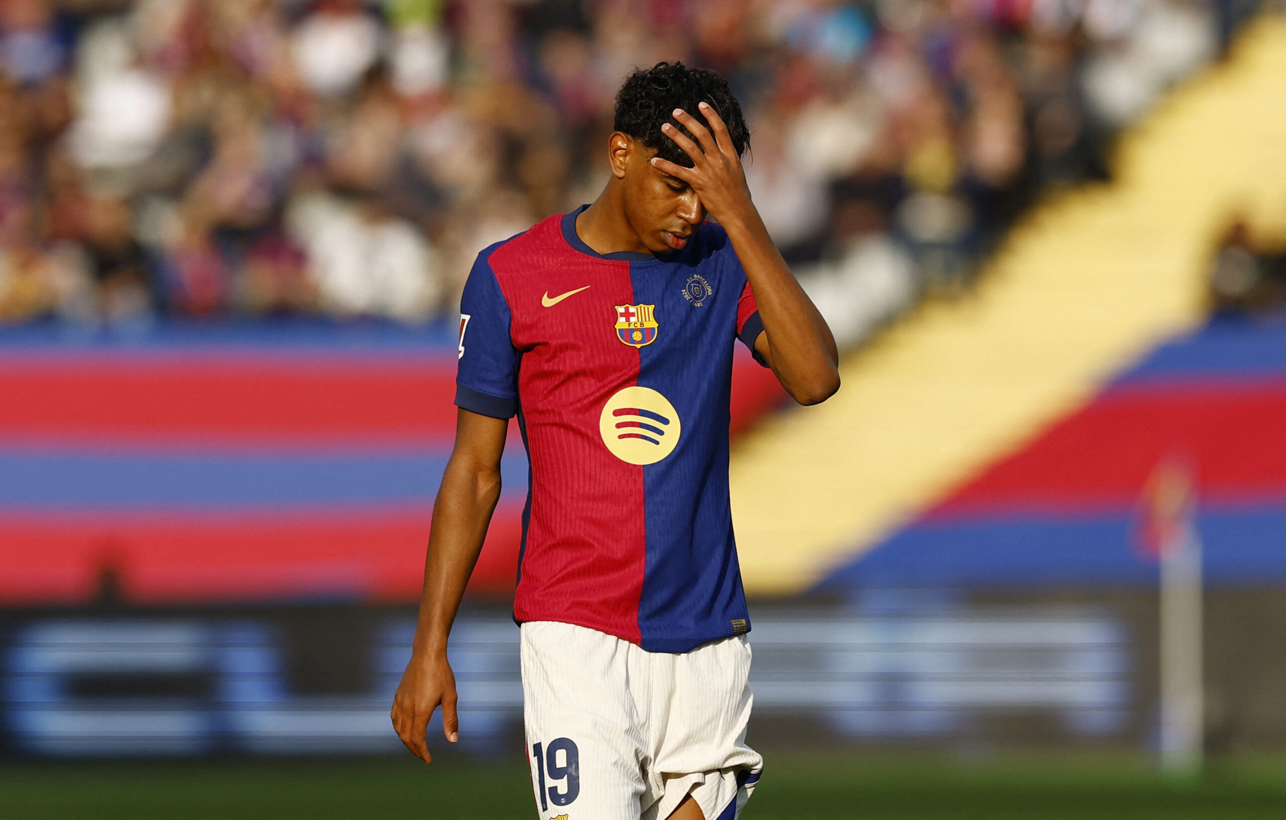 Soccer Football - LaLiga - FC Barcelona v Las Palmas - Estadi Olimpic Lluis Companys, Barcelona, Spain - November 30, 2024 FC Barcelona's Lamine Yamal reacts,Image: 941217963, License: Rights-managed, Restrictions: , Model Release: no, Credit line: Albert Gea / Reuters / Forum