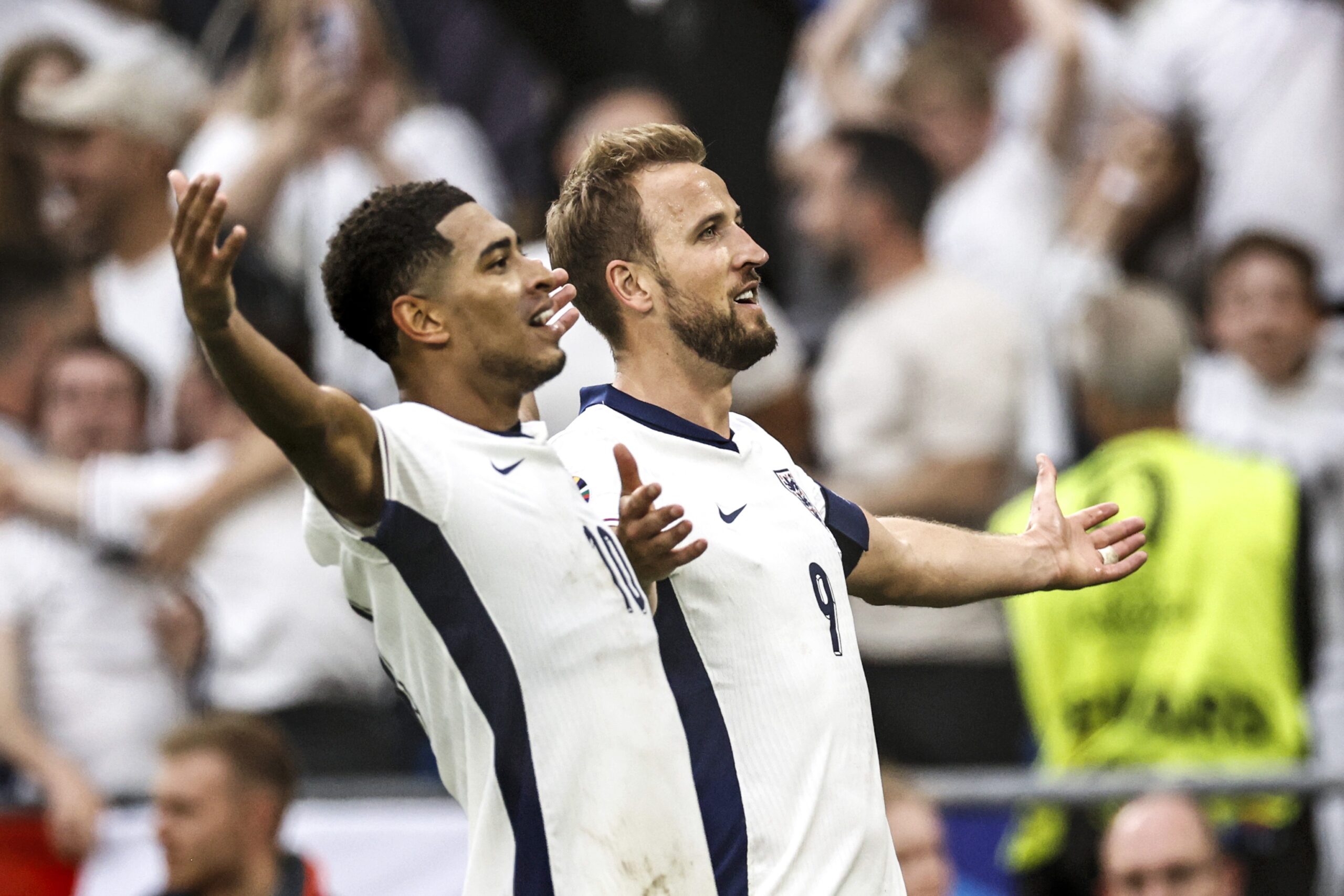 6/30/2024 - GELSENKIRCHEN - (l-r) Jude Bellingham of England, Harry Kane of England celebrate 1-1 during the UEFA EURO 2024 round of 16 match between England and Slovakia at the Arena AufSchalke on June 30, 2024 in Gelsenkirchen, Germany. ANP | Hollandse Hoogte | MAURICE VAN STEEN /ANP/Sipa USA