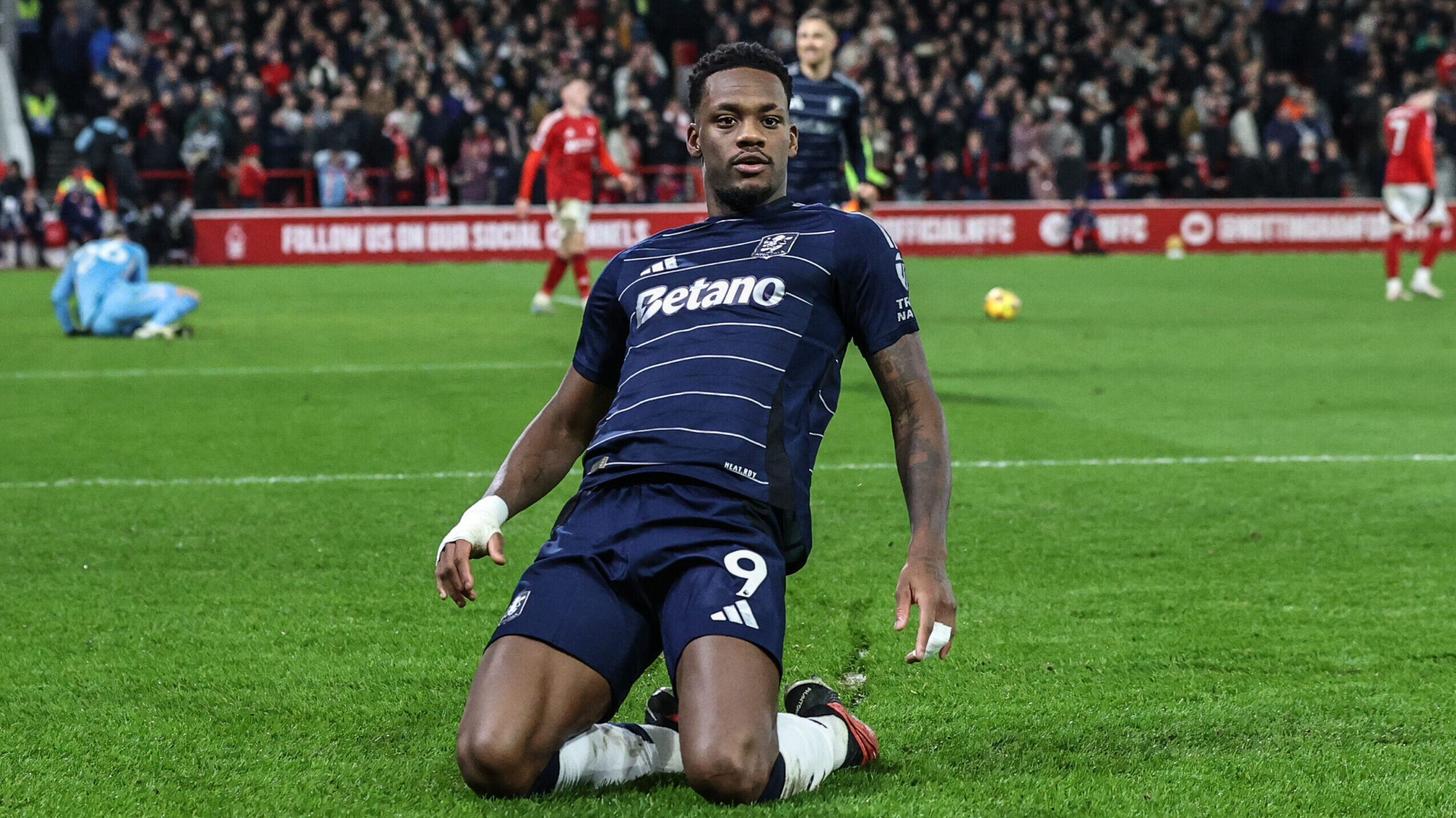 Jhon Duran of Aston Villa celebrates his goal to make it 0-1 during the Premier League match Nottingham Forest vs Aston Villa at City Ground, Nottingham, United Kingdom, 14th December 2024