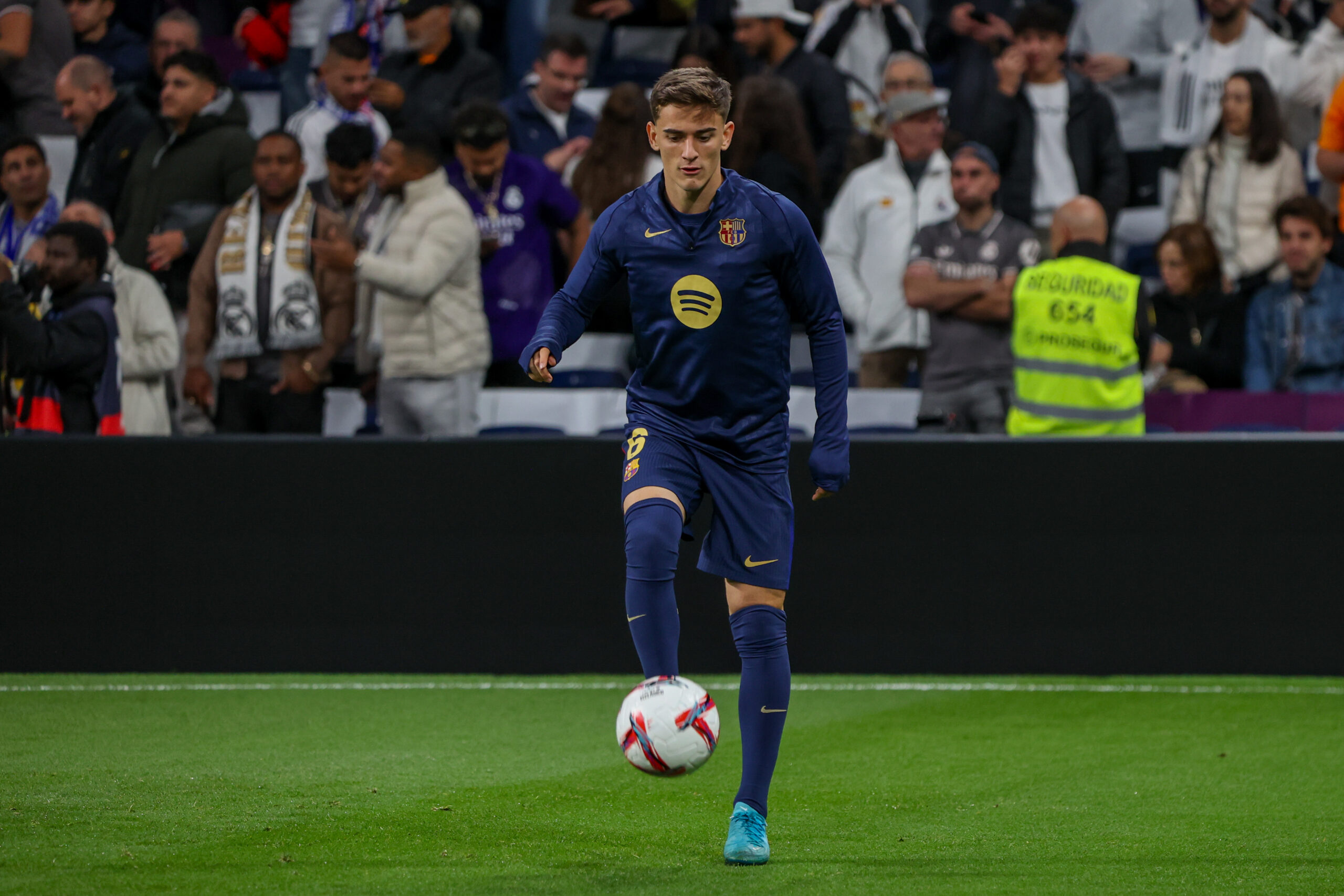 Gavi, Spanish Footballer of FC Barcelona played in the Liga between Real Madrid and FC Barcelona at the Santiago Bernabeu Stadium Real Madrid had a score of 0 goals a 4 against FC Barcelona at the Estadio Santiago Bernabeu in a new year in the LA Spanish Football League. (Photo by David Canales / SOPA Images/Sipa USA)
