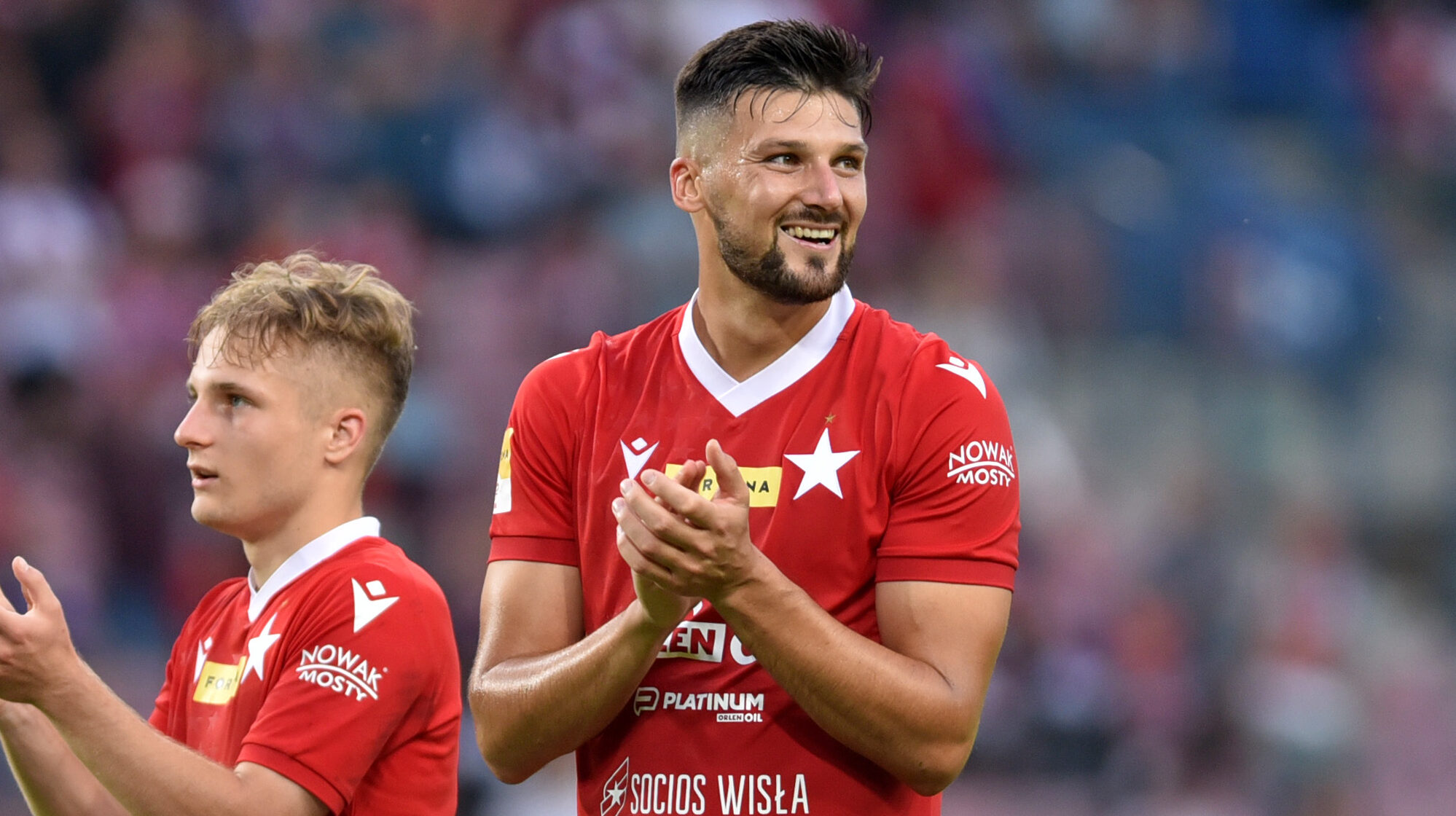 Pilkarze Wisly radosc po meczu, Kacper Duda, Adi Mehremic