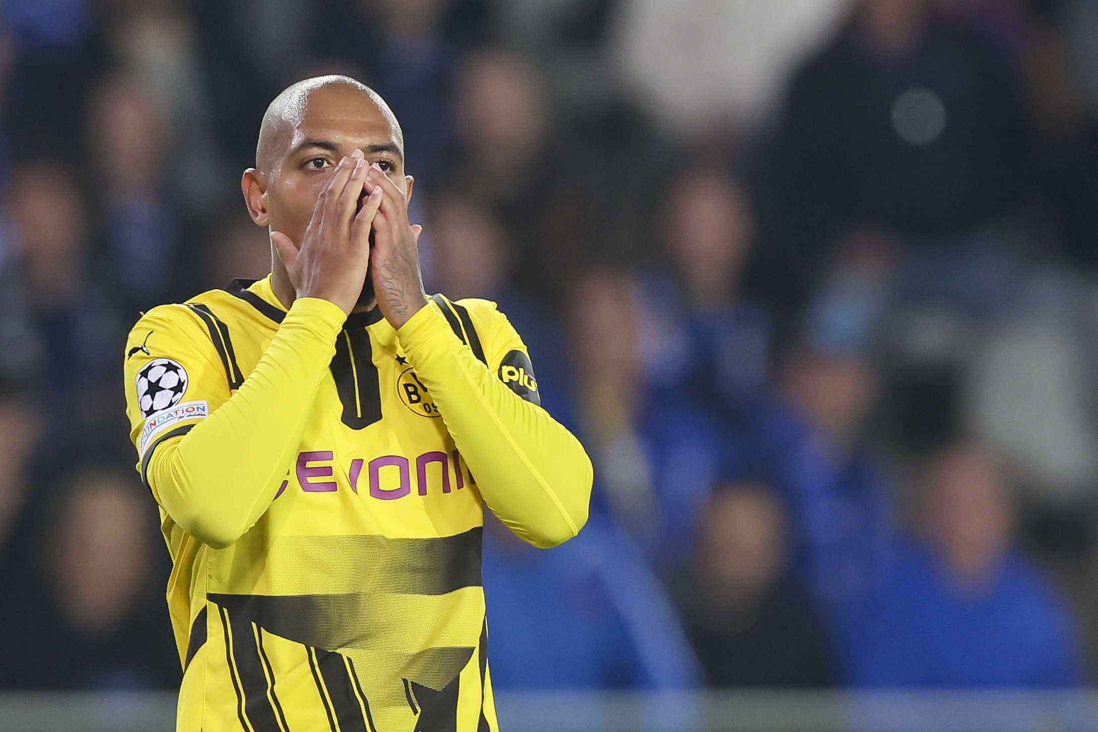 Donyell Malen (Borussia Dortmund) looks dejected during the UEFA Champions League 2024/25 League Phase MD1 match between Club Brugge KV and Borussia Dortmund at Jan Breydel Stadium on September 18, 2024 in Bruges, Belgium.  (Photo by Marco Steinbrenner/DeFodi Images)