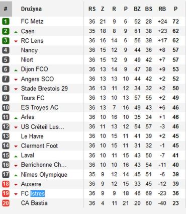 Z ligi leci Bastia, a Istres ma niewielkie szanse na opuszczenie strefy spadkowej. Do końca o zachowanie bytu na zapleczu francuskiej ekstraklasy będzie walczyć były klub Dariusza Dudki i Ireneusza Jelenia – AJ Auxerre.
