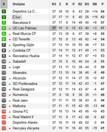 Co ciekawe z Seguna Division spadają cztery zespoły, ale nie ma wyraźnego outsidera i każdy ma jeszcze szansę na zachowanie ligowego bytu. Inną ciekawostką jest to, że na razie w strefie spadkowej znajduje się druga drużyna Realu Madryt.