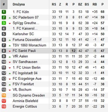 Z ligi na pewno spada Energie Cottbus, a Dynamo Drezno i Arminia Bielefeld zagrają o baraże w ostatniej kolejce! Wygrany będzie walczył o pozostanie na zapleczu Bundesligi z ekipą z trzeciego poziomu rozgrywkowego, a przegrany spadnie bezpośrednio. W lepszej sytuacji jest Dynamo, któremu wystarczy remis do pozostania na 16. miejscu.