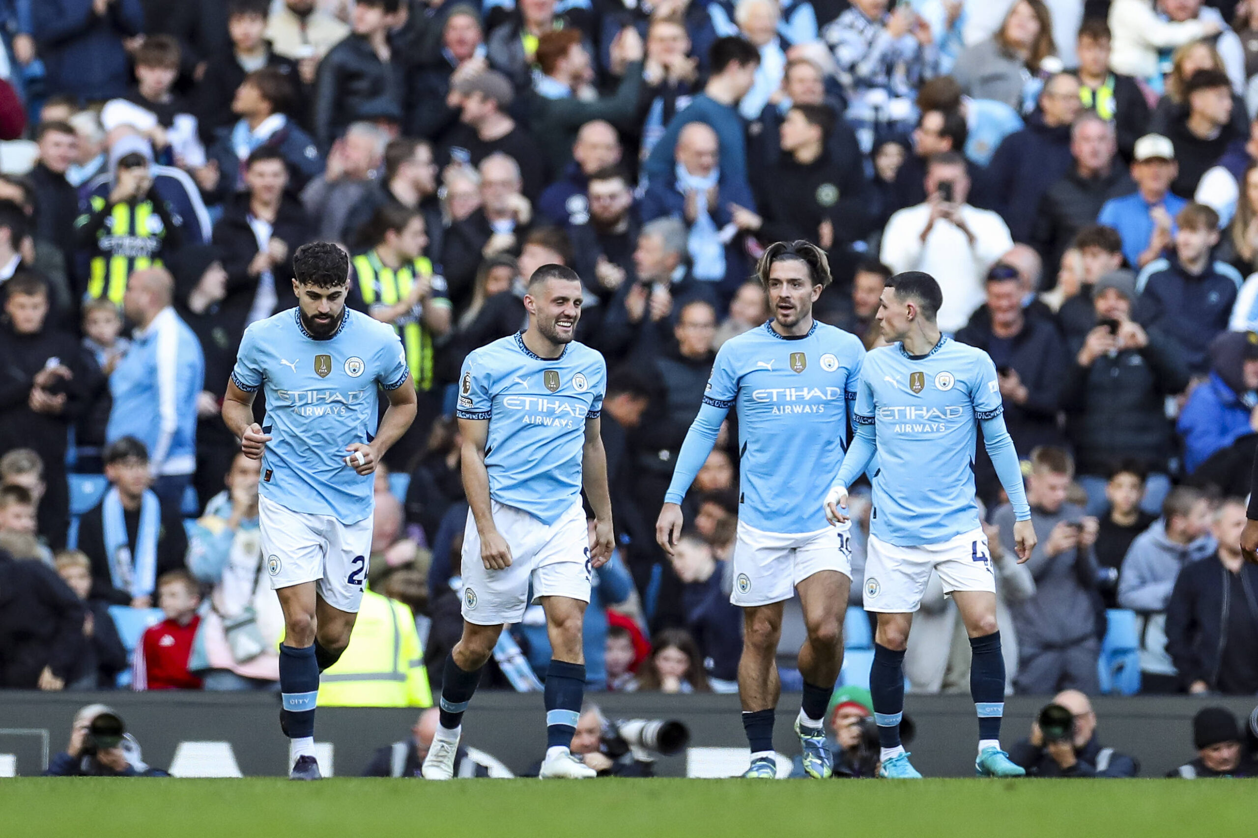 Manchester City v Fulham Manchester City midfielder Mateo Kovacic 8 scores a GOAL 2-1 and celebrates with Manchester City midfielder Jack Grealish 10 during the Manchester City v Fulham English Premier League Match at Etihad Stadium, Manchester, United Kingdom on 5 October 2024 Editorial use only. All images are copyright Every Second Media Limited. No images may be reproduced without prior permission. All rights reserved. Premier League and Football League images are subject to licensing agreements with Football DataCo Limited. see https://www.football-dataco.com Copyright: xIMAGO/EveryxSecondxMediax ESM-1166-0041