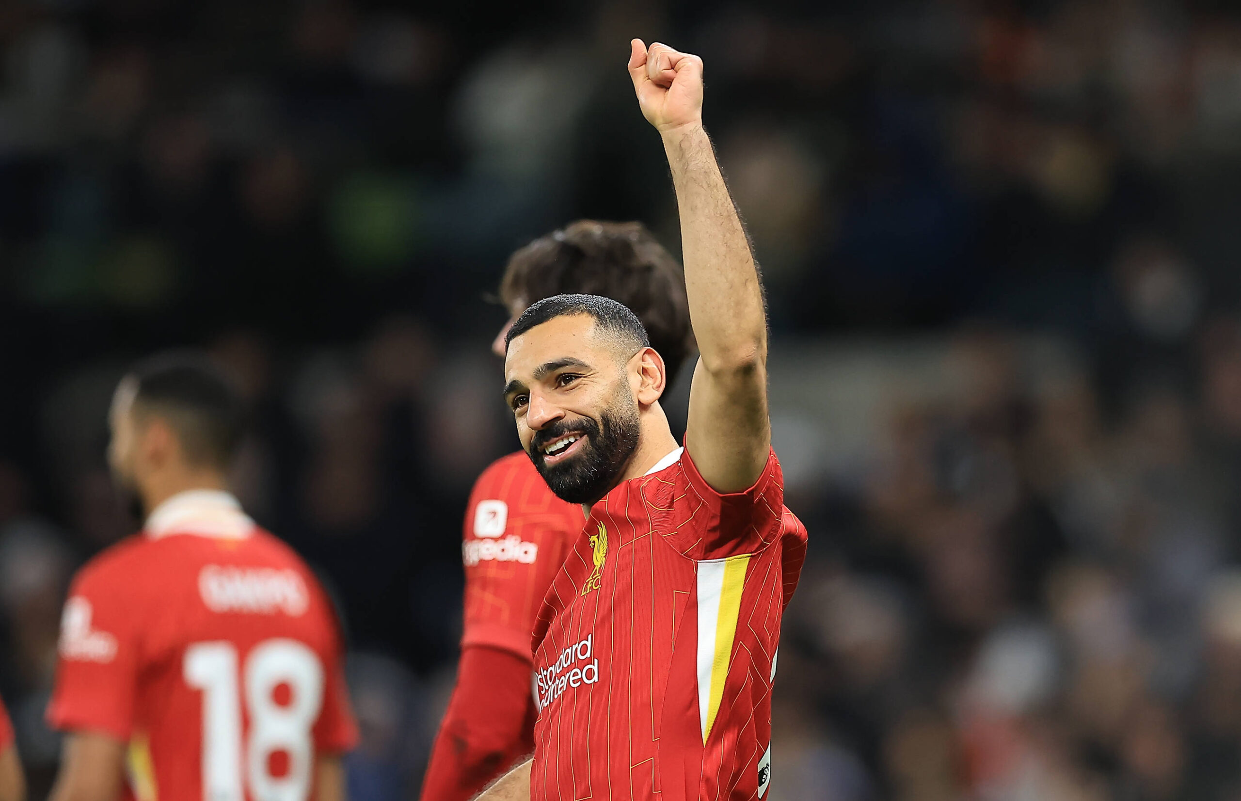 Tottenham Hotspur v Liverpool Premier League 22/12/2024. GOAL CELEBRATION Liverpool Forward Mohamed Salah 11 makes it 1-4 during the Premier League match between Tottenham Hotspur and Liverpool at Tottenham Hotspur Stadium, London, United Kingdom on 22 December 2024. London Tottenham Hotspur Stadium London United Kingdom Editorial use only DataCo restrictions apply See www.football-dataco.com , Copyright: xChrisxFoxwellx PSI-21118-0023