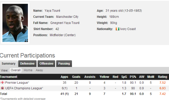 Jak forma Iworyjczyka wygląda w suchych liczbach? W Premier League rozegrał on 35 spotkań, w których strzelił 20 bramek i dorzucił do tego dorobku 9 asyst. Jest to bilans dużo gorszy od Suareza – to prawda, ale trzeba tu wziąć poprawkę na pozycję oraz funkcję jaką obaj zawodnicy pełnią na boisku. Urugwajczyk, to w końcu napastnik, lis pola karnego, piłkarski cwaniak, który potrafi znaleźć wyjście nawet z tej najtrudniejszej sytuacji. Sam także kreuje grę i okazje dla kolegów. Z kolei Toure to bez dwóch zdań mózg, serce i prawe płuco (to większe) Manchesteru City. Atakuje, broni, strzela, asystuje i w kapitalny sposób wykonuje stałe fragmenty gry. Na boisku ma o wiele więcej pracy od Suareza i ciąży na nim zdecydowanie większa odpowiedzialność. Jeśli jest na placu gry, to nie ma praktycznie takiej akcji, która by nie przeszła przez jego nogi. No i w końcu, jest pomocnikiem (nie defensywnym jak niektórzy mylnie go określają), więc jego bilans robi tym większe wrażenie.