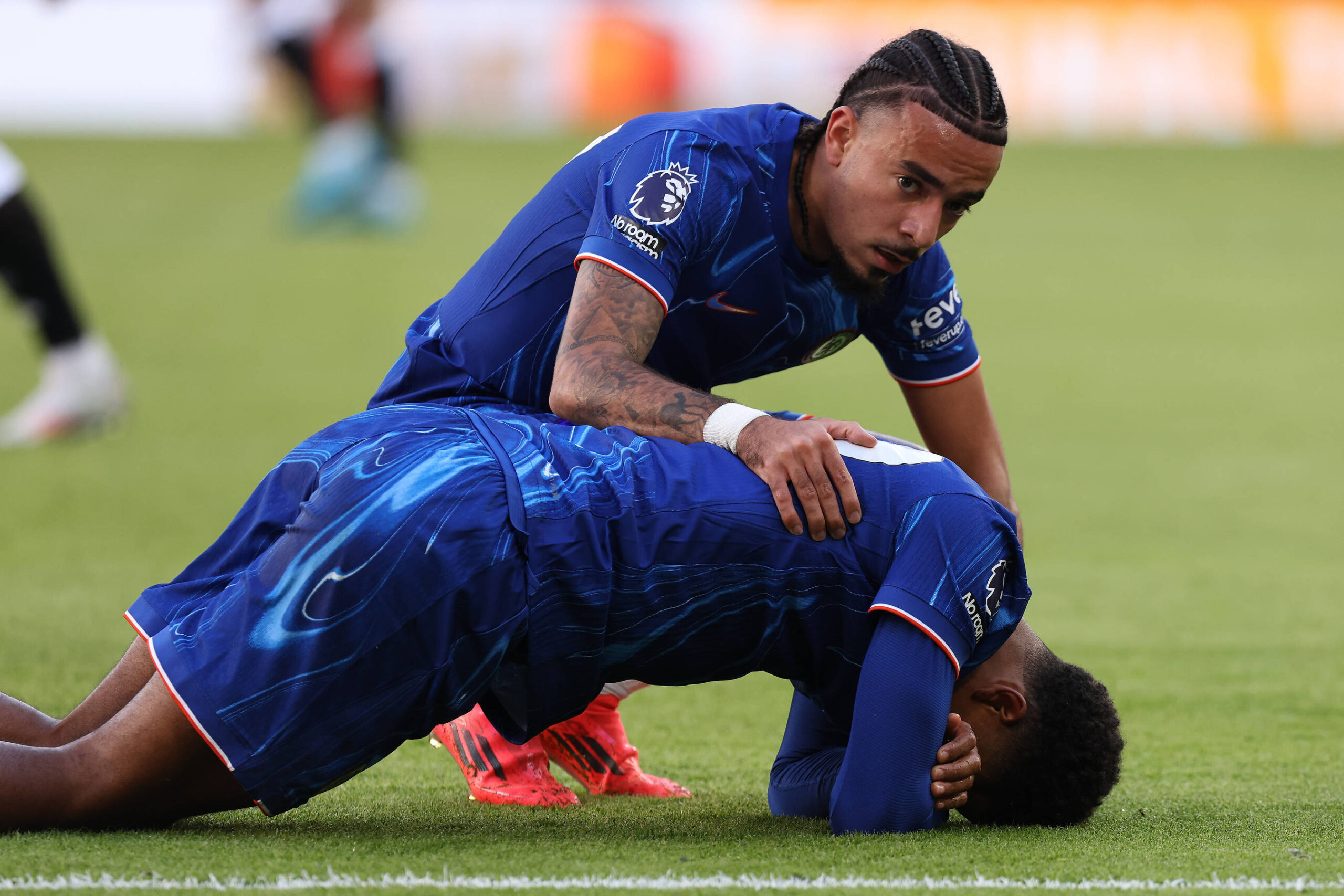 Chelsea v Newcastle United Premier League 27/10/2024. Wesley Fofana of Chelsea lays down injured during the Premier League match between Chelsea and Newcastle United at Stamford Bridge, London, England on 27 October 2024. London Stamford Bridge Greater London England Editorial use only DataCo restrictions apply See www.football-dataco.com , Copyright: xPaulxPhelanx PSI-20661-0018